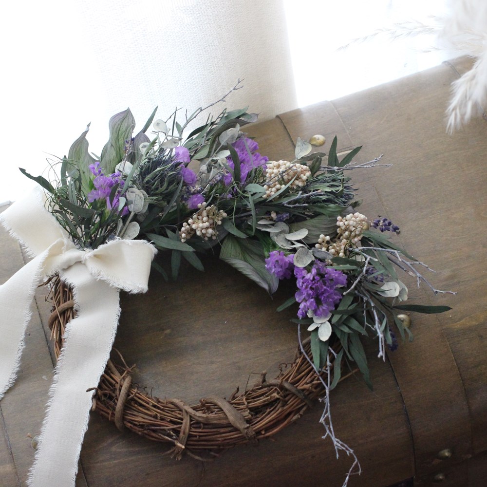 ナチュラルなドライフラワーは、アンティークなインテリアとしてご使用いただけます。