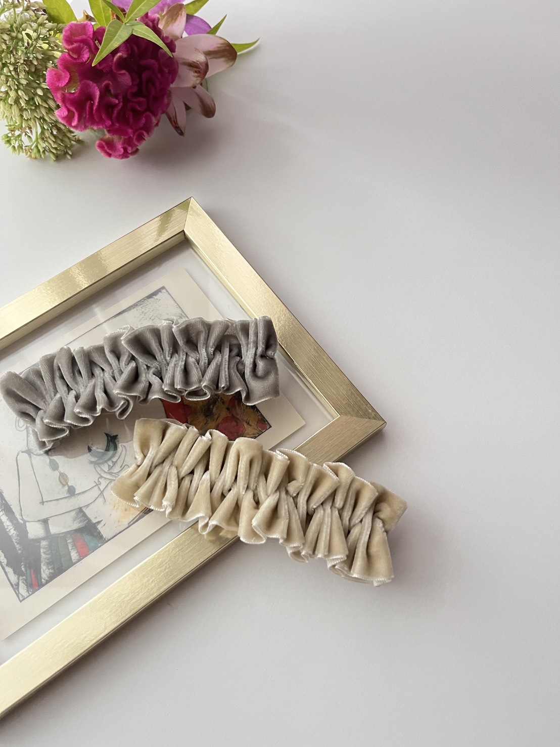 自宅アトリエにて、お花・お菓子・バッグなど日々にそっと寄り添うものを集めました。