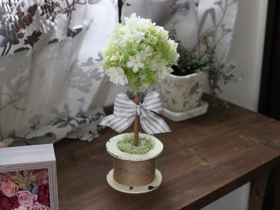 ホワイトとグリーンのかわいらしいトピアリー。